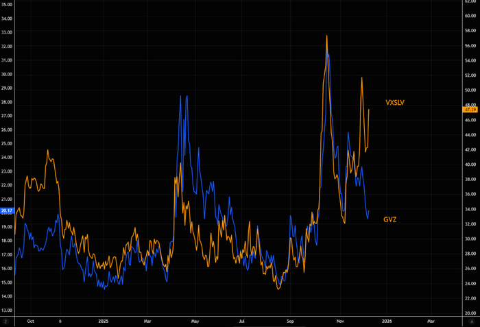 与此同时,期权市场的波动率定价差异为投资者提供了套利空间。随着交易员恐慌性地买入白银看涨期权以追逐上涨,白银的波动率急剧飙升。相比之下,黄金的波动率并未同步爆发,两者的波动率价差在短期内迅速扩大。这种分化使得构建黄金看涨期权结构成为一种具有吸引力的补涨策略。
